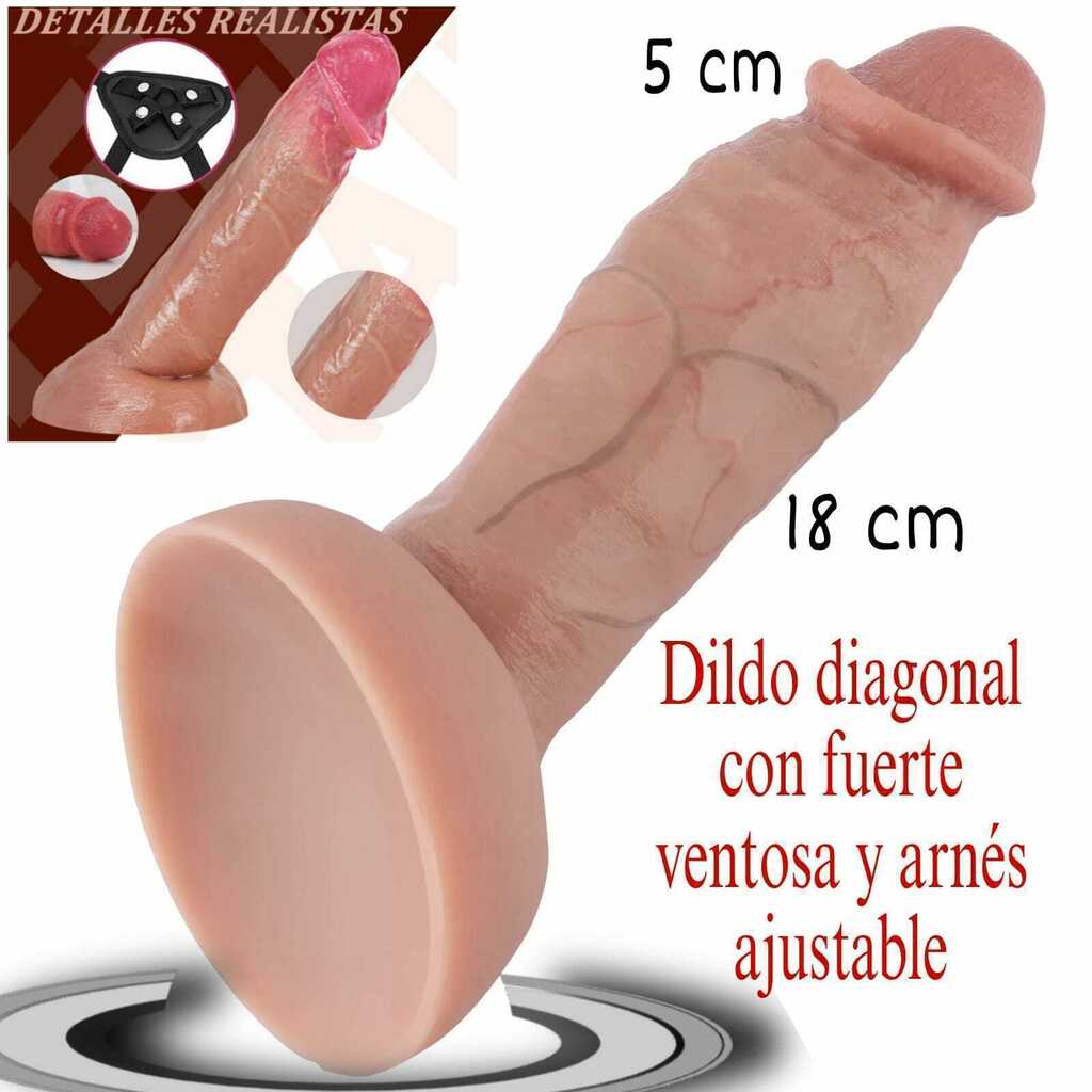 Dildo en diagonal flexible realista con arnes incluido